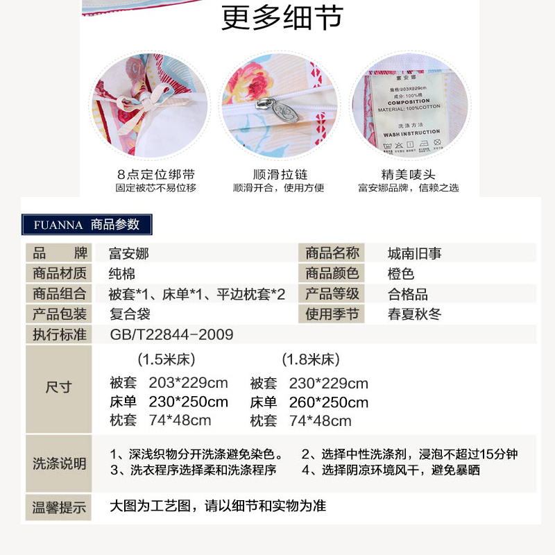 城南旧事 床单四件套(被套1件 床单1件 枕套2件)(适合1.8米床)【AB版纯棉/橙】 |