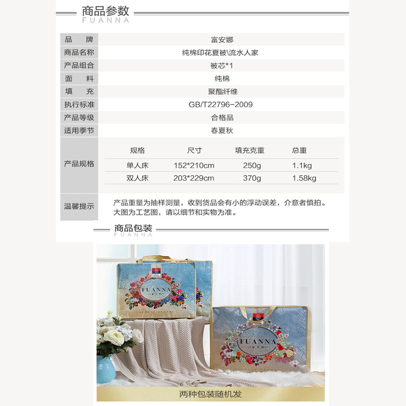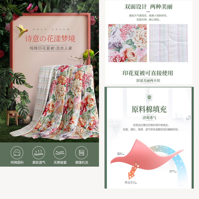 纯棉印花夏被 (适用双人床)(夏被1件)【面料:纯棉;填充物:100%聚酯纤维/黄】 |