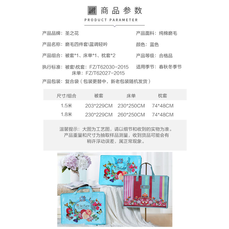蓝调轻吟 床单四件套(被套1件床单1件枕套2件)(适合1.8米床)【纯棉磨毛/蓝】 |