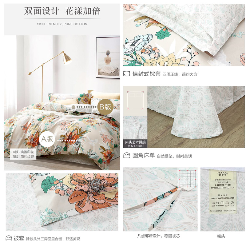 陌上花颜 床单四件套(被套1件床单1件枕套2件)(适合1.8米床)【纯棉/黄】 |