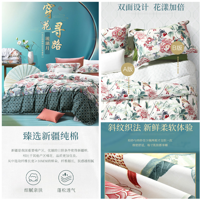 琉璃月 床单四件套(被套1件床单1件枕套2件)(适合1.8米床【纯棉/深绿】 |