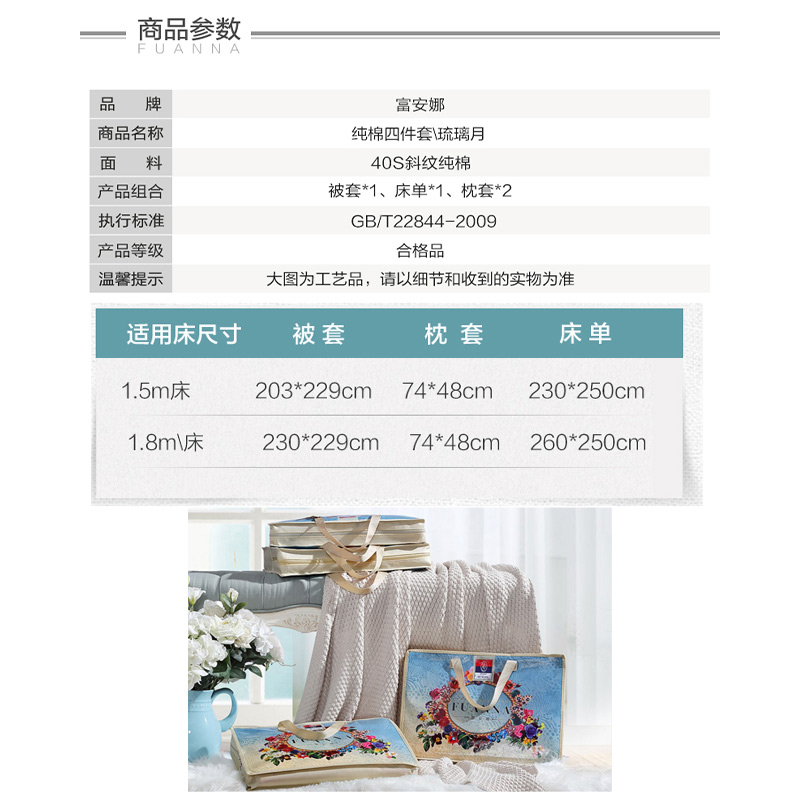 琉璃月 床单四件套(被套1件床单1件枕套2件)(适合1.5米床)【纯棉/深绿】 |