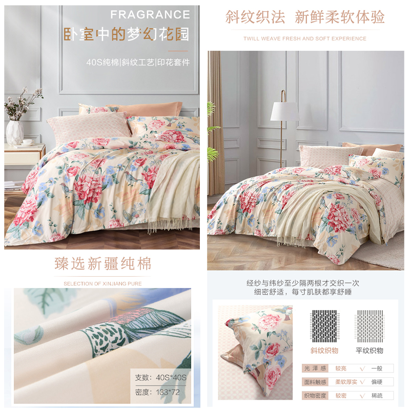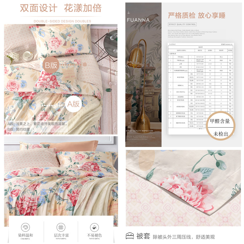 花影月熙 床单三件套(被套1件床单1件枕套1件)(适合1.2米床)【纯棉/黄】 |
