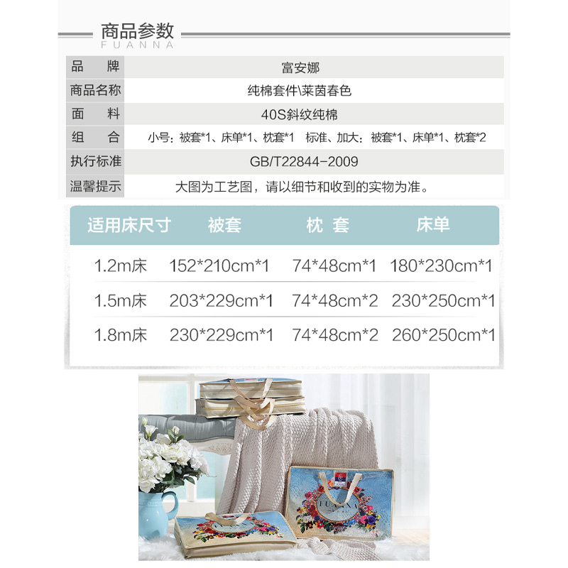 莱茵春色 床单四件套(被套1件床单1件枕套2件)(适合1.5米床)【纯棉/蓝】 |