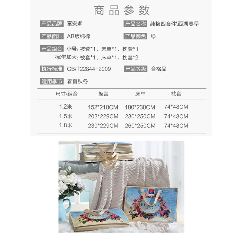 西湖早春 床单三件套(被套1件床单1件枕套1件)(适合1.2米床)【纯棉/绿】 |