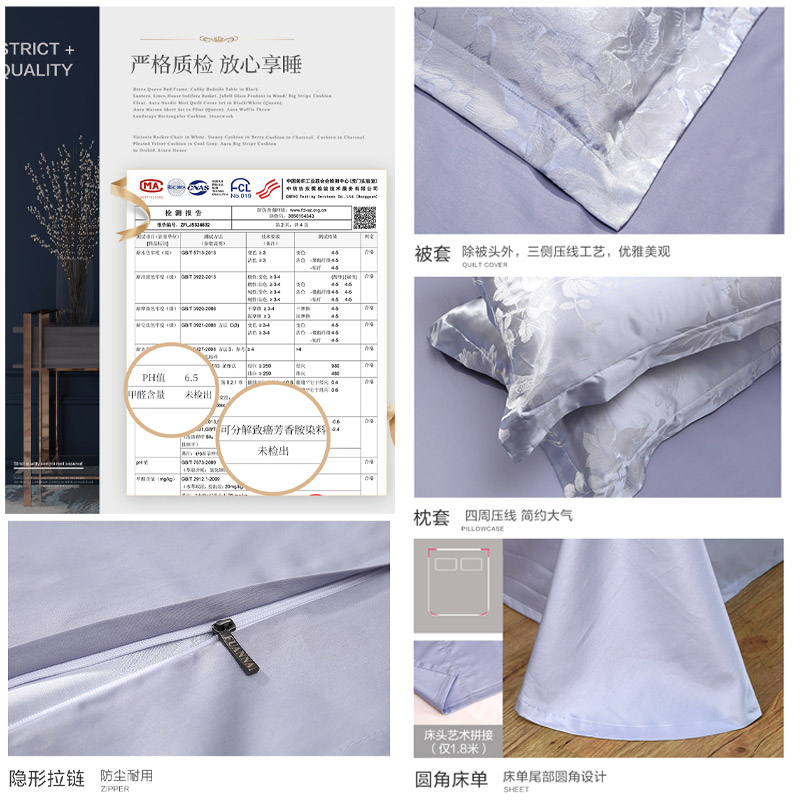 浅梦墨汐 床单四件套(被套1件床单1件枕套2件)(适合1.5米床)【A版:涤莫代尔提花;B版:纯棉/灰】 |