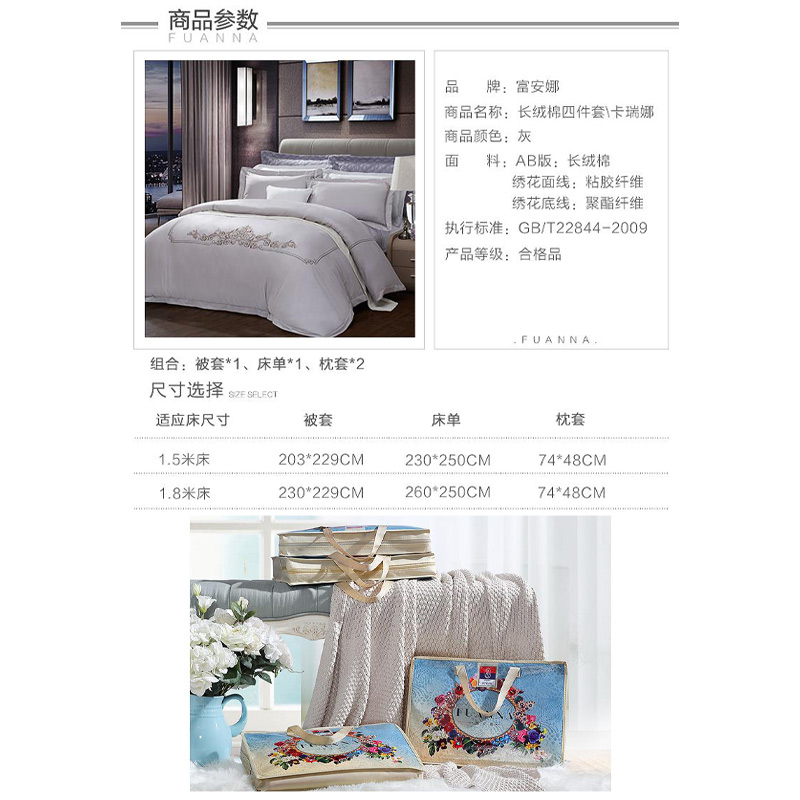 卡瑞娜 床单四件套(被套1件床单1件枕套2件)(适合1.5米床)【长绒棉/灰】 |