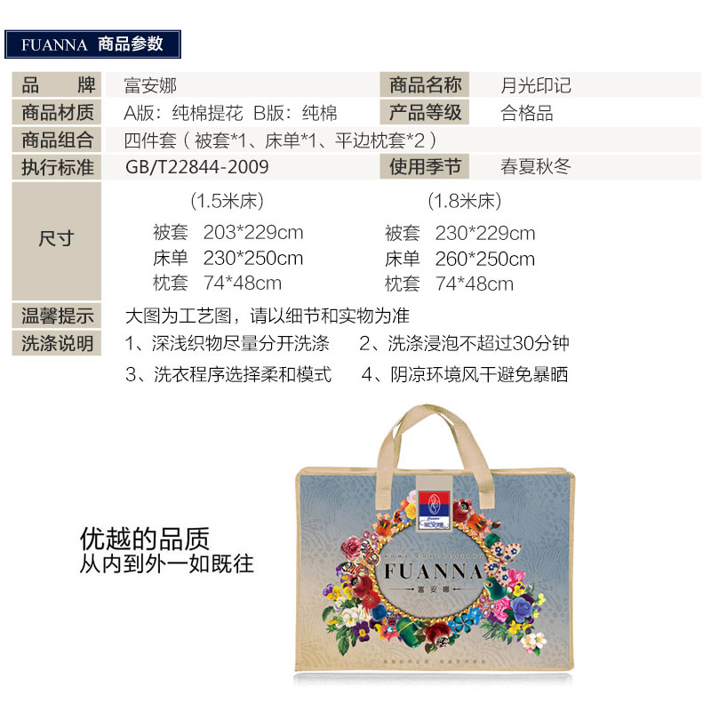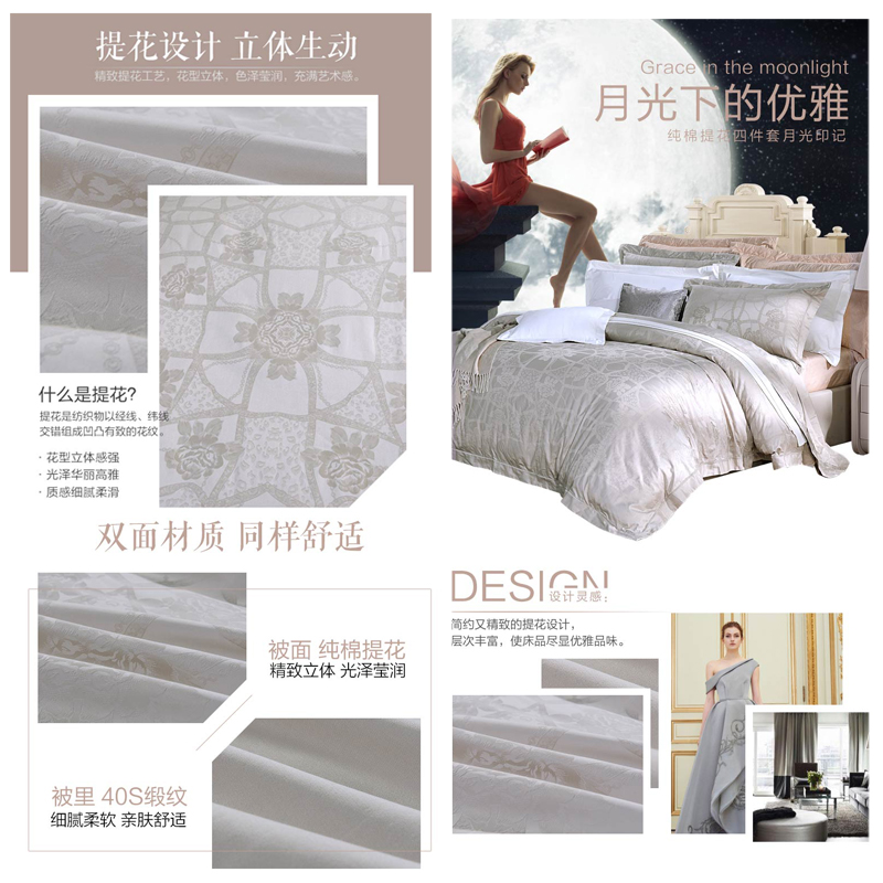 月光印记 床单四件套(被套1件床单1件枕套2件)(适合1.8米床)【纯棉/浅咖】 |