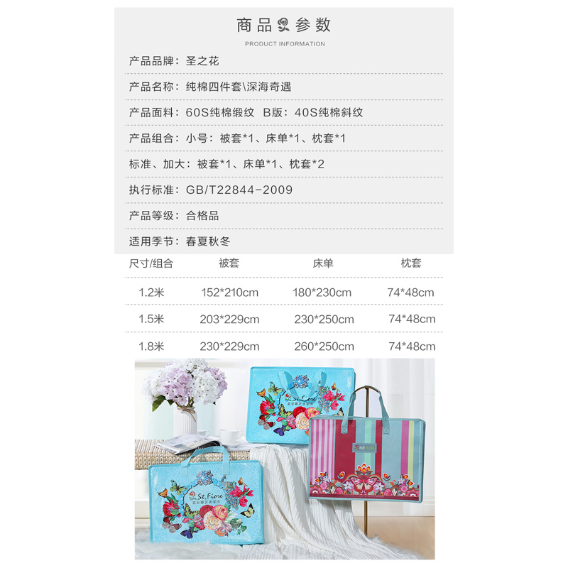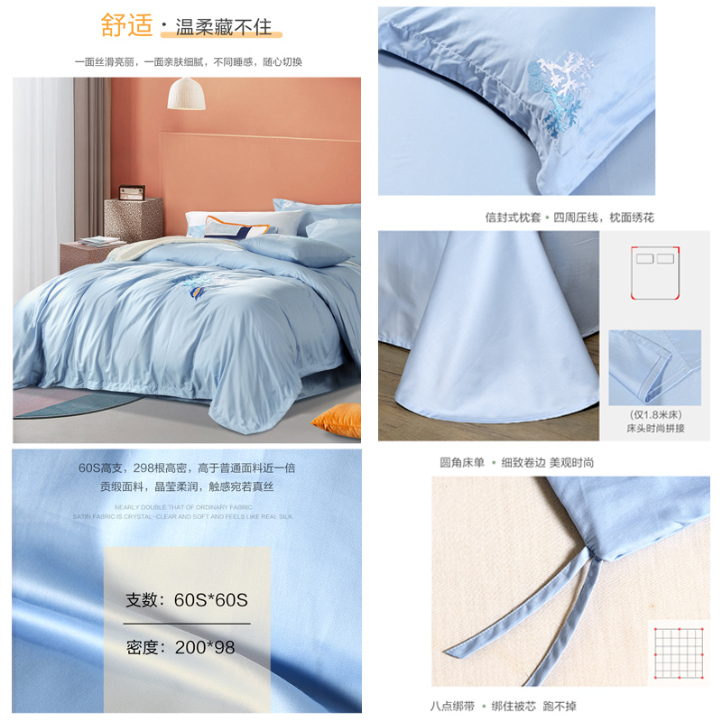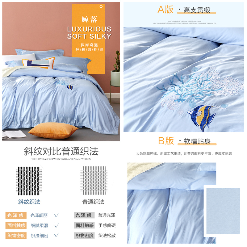 深海奇遇 床单四件套(被套1件床单1件枕套2件)(适合1.5米床)【纯棉缎纹/浅蓝】 |