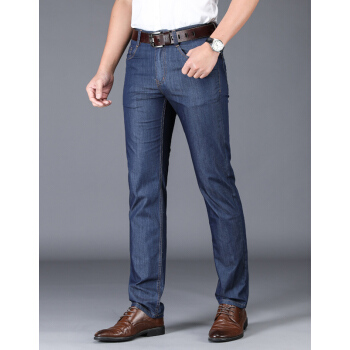 吉普(JEEP)牛仔裤男宽松夏季新品薄款直筒长裤商务休闲大码天丝弹力男士裤子 2019款 蓝色 33码 2尺5 |