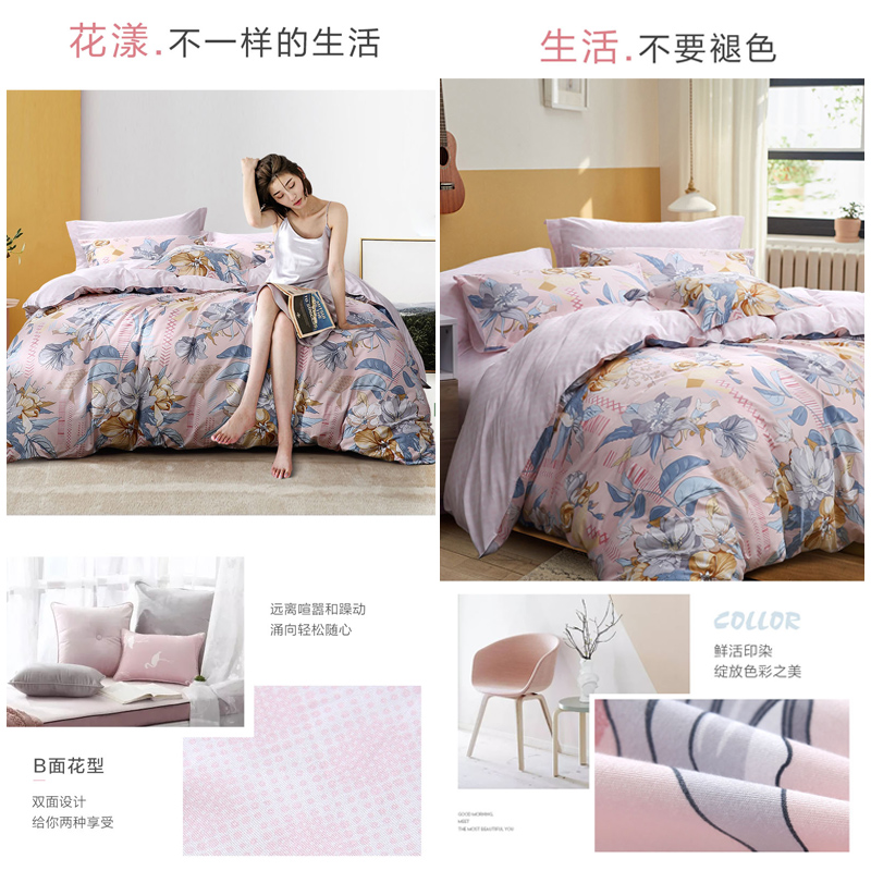 春日初妆 四件套(被套1件床单1件枕套2件)(适合1.5米床)床单【纯棉/粉】 |