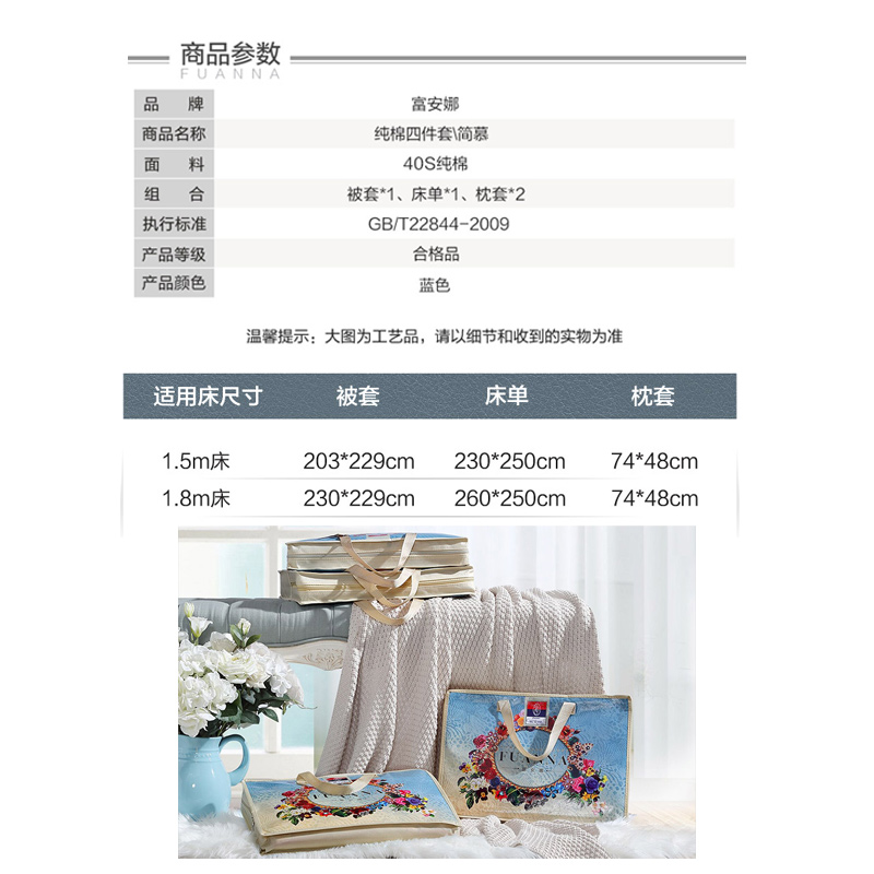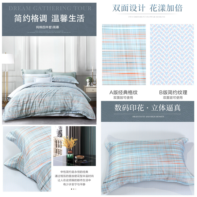 简慕 床单四件套(被套1件床单1件枕套2件)(适合1.8米床)【纯棉缎纹/蓝】 |