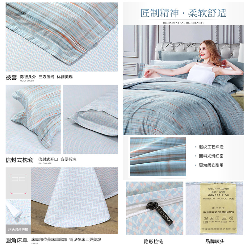 简慕 床单四件套(被套1件床单1件枕套2件)(适合1.5米床)【纯棉缎纹/蓝】 |