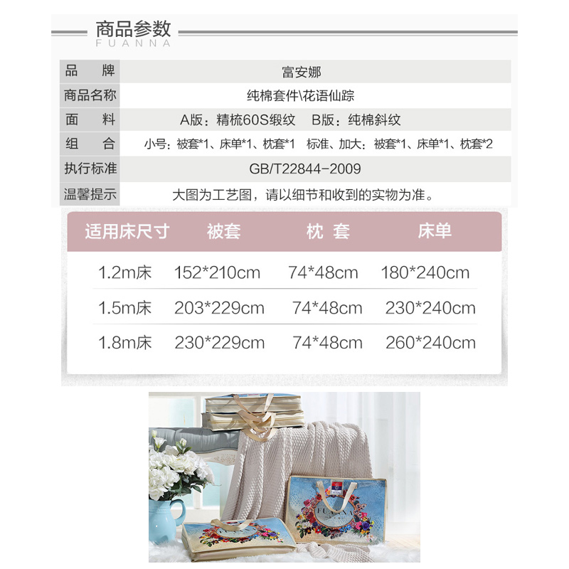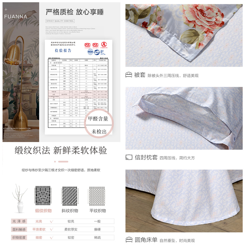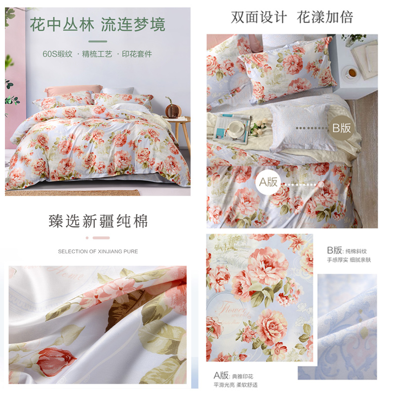 花语仙踪 床单四件套(被套1件床单1件枕套2件)(适合1.5米床)【纯棉缎纹/蓝】 |