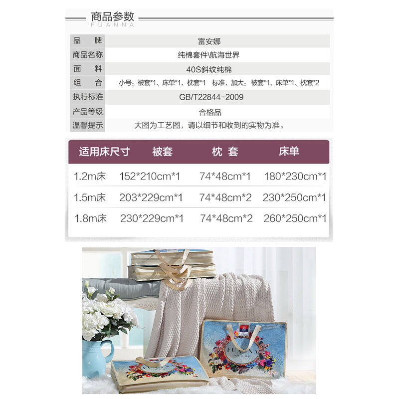 航海世界 床单四件套(被套1件床单1件枕套2件)(适合1.5米床)【纯棉/紫】 |