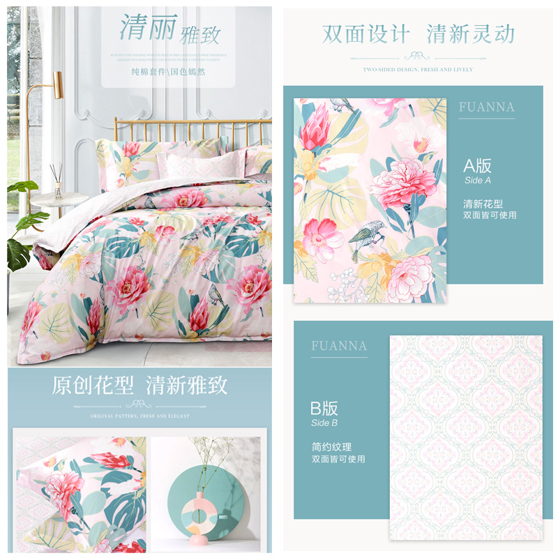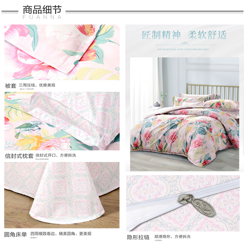 国色嫣然 床单三件套(被套1件床单1件枕套1件)(适合1.2米床)【纯棉/粉】 |