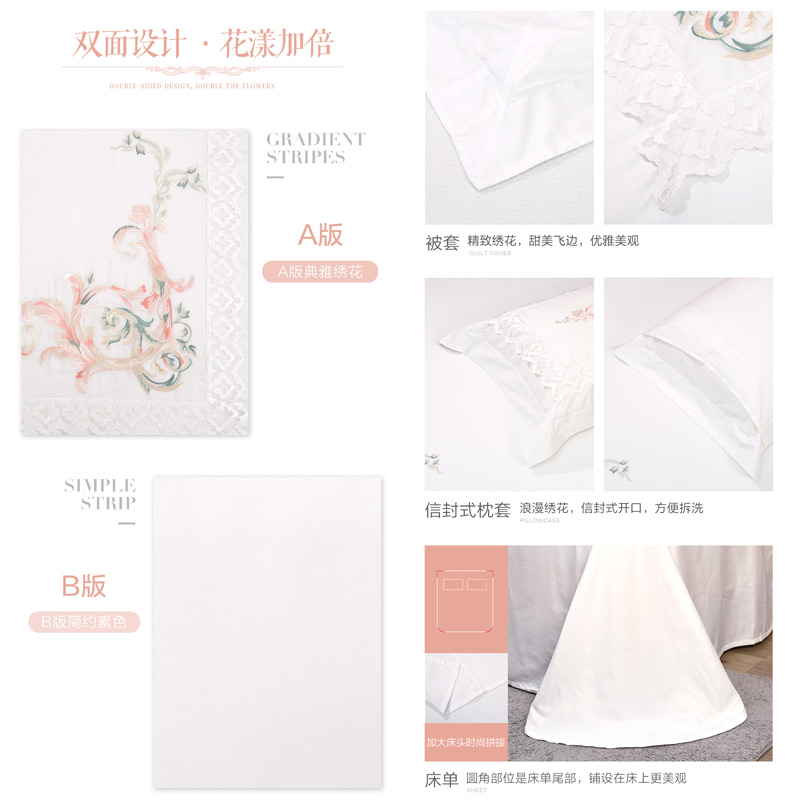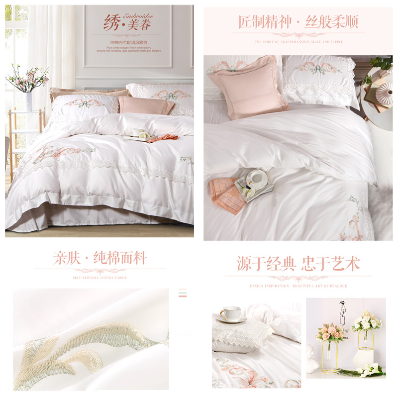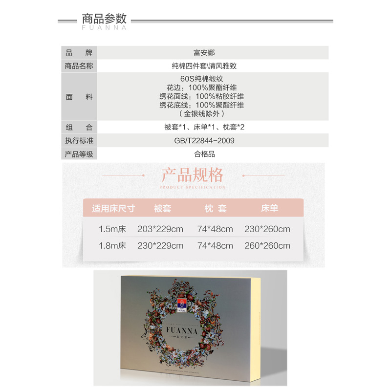 清风雅致 床单四件套(被套1件床单1件枕套2件)(适合1.8米床)【纯棉缎纹/白】 |