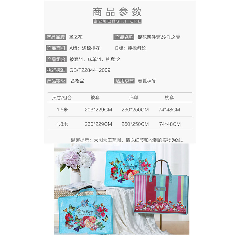 汐洋之梦 床单四件套(被套1件床单1件枕芯2件)(适合1.5米床)【A版:涤棉提花;B版:纯棉/粉】 |