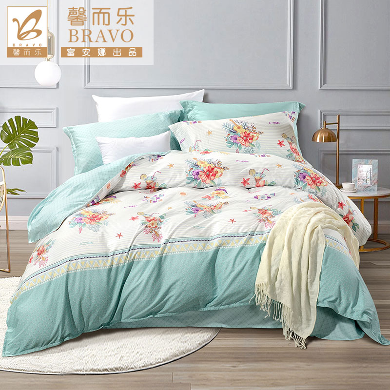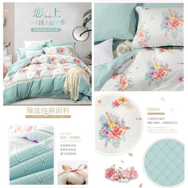 粉红乐夏 床单四件套(被套1件床单1件枕套2件)(适合1.8米床)【纯棉/蓝】 |