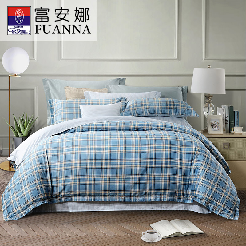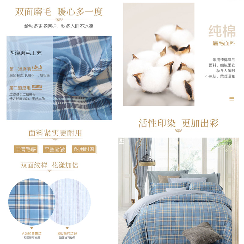 怀特之约床笠四件套(被套1件床笠1件枕套2件)(适合1.8米床)【纯棉磨毛/蓝色】 |