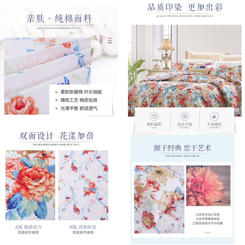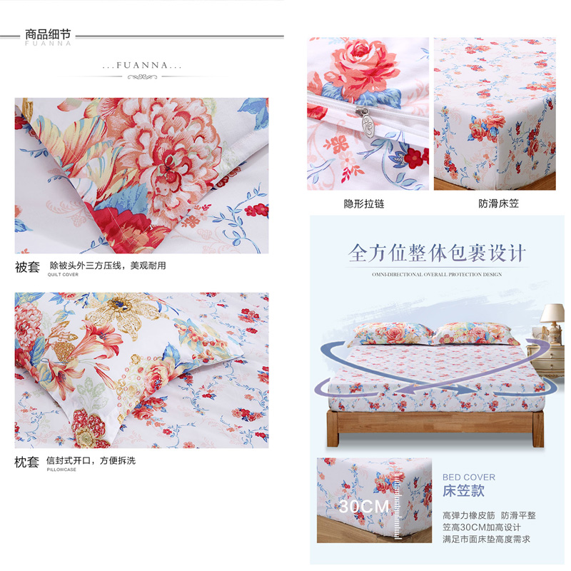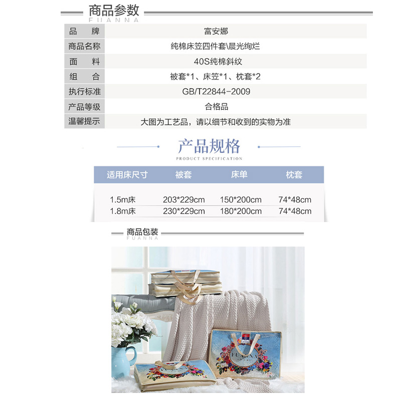 晨光绚烂 床笠四件套(被套1件床笠1件枕套2件)(适合1.5米床)【纯棉/蓝】 |