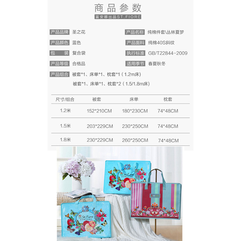 丛林夏梦 床单四件套(被套1件床单1件枕套2件)(适合1.8米床)【纯棉/蓝】 |
