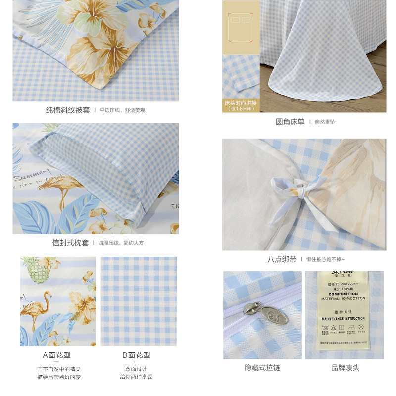 丛林夏梦 床单四件套(被套1件床单1件枕套2件)(适合1.5米床)【纯棉/蓝】 |