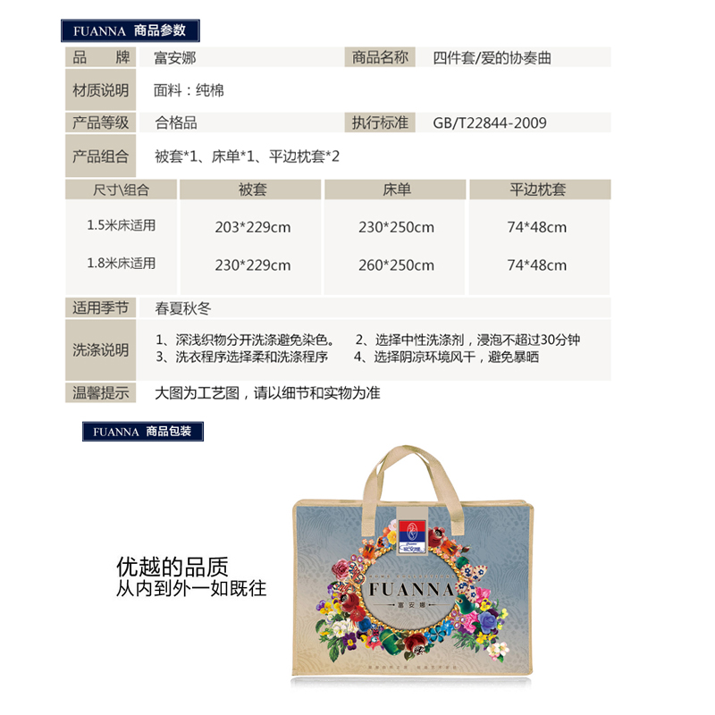 爱的协奏曲 床单四件套(被套1件床单1件枕套2件)(适合1.5米床)【棉/粉】 |