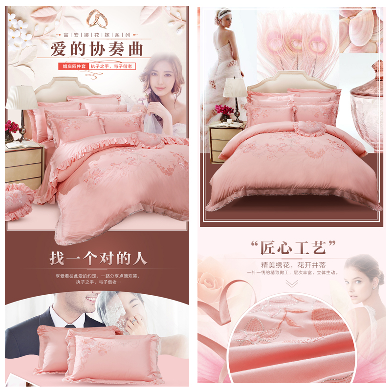 爱的协奏曲 床单四件套(被套1件床单1件枕套2件)(适合1.8米床)【棉/粉】 |