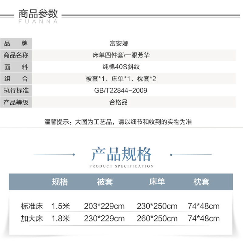 一眼芳华 床单四件套(被套1件床单1件枕套2件)(适合1.8米床)【纯棉/蓝】 |