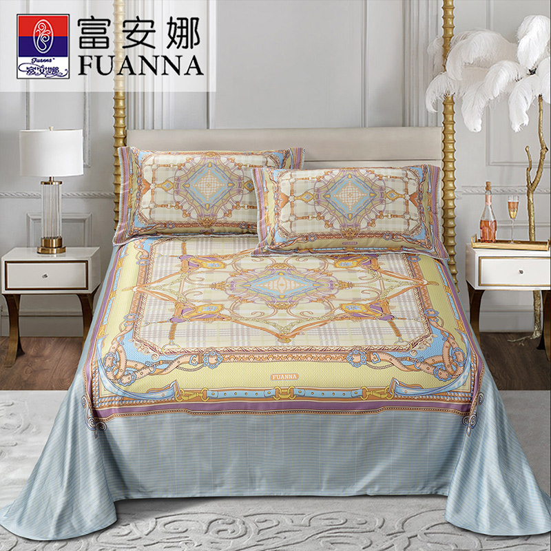 神秘殿园 倾城凉席床单款三件套(凉席1件枕套2件)(适合1.8米床)【竹纤维/蓝】 |