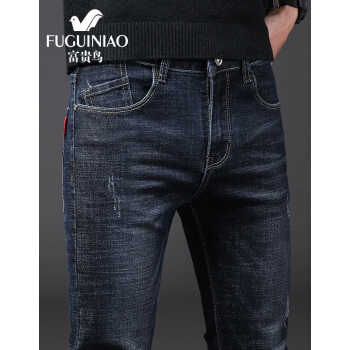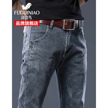 富贵鸟牛仔裤男士夏季2020新品韩版潮流修身小脚裤休闲弹力裤子男裤 8913深灰 30 |