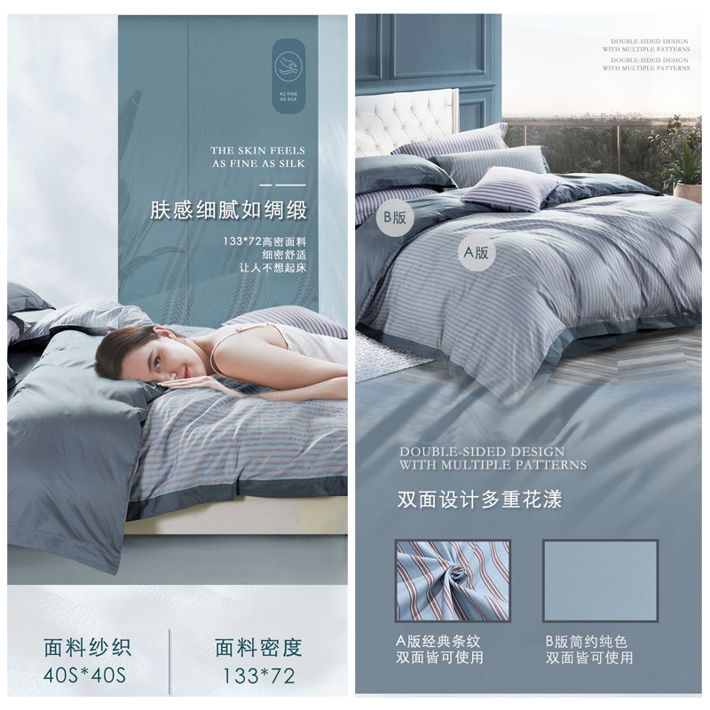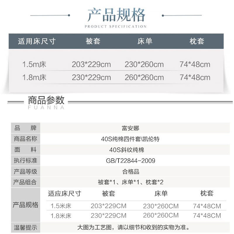 凯伦特 床单四件套(被套1件床单1件枕套2件)(适合1.8米床)【40支斜纹133*72/蓝】 |