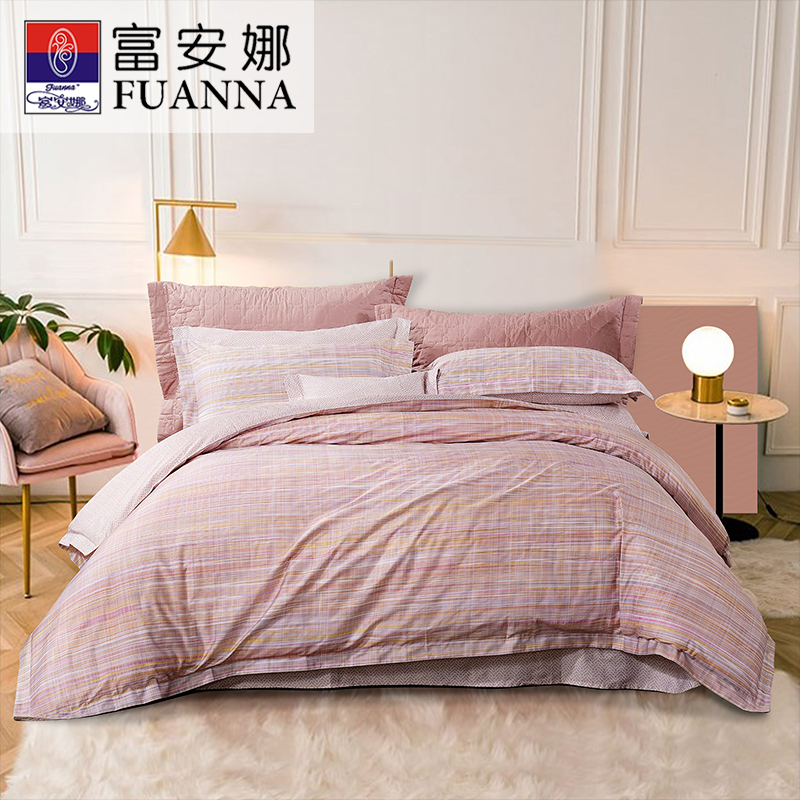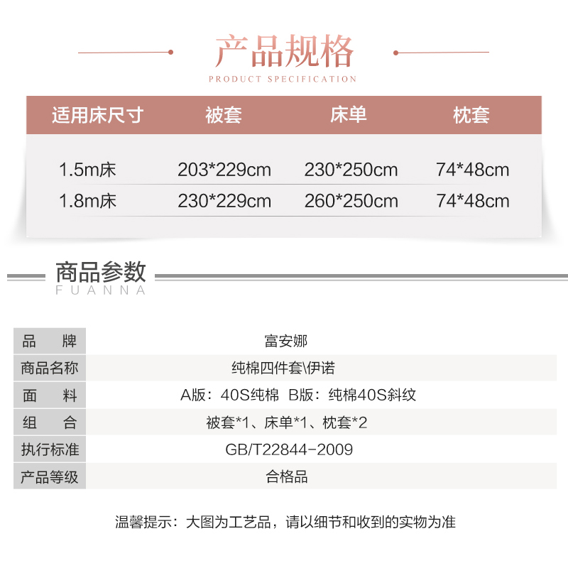 伊诺 纯棉床单四件套(被套1件床单1件枕套2件)(适合1.5米床)【40支纯棉/粉】 |
