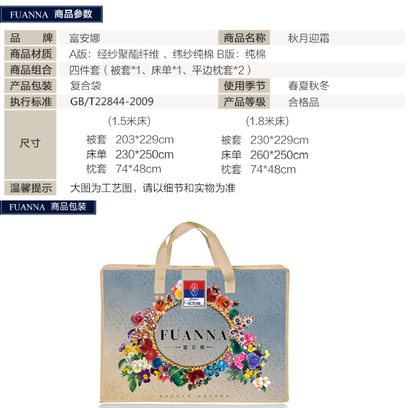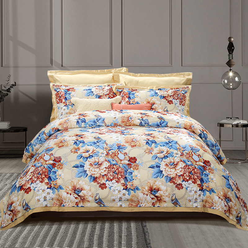 秋月迎霜 床单四件套(被套1件床单1件枕套2件)(适合1.8米床)【涤棉提花+纯棉/黄】 |