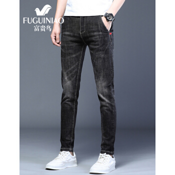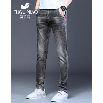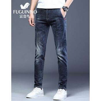 富贵鸟牛仔裤男2020夏季新品韩版潮流修身小脚裤男士弹力休闲裤子男裤 8605浅蓝 30 |