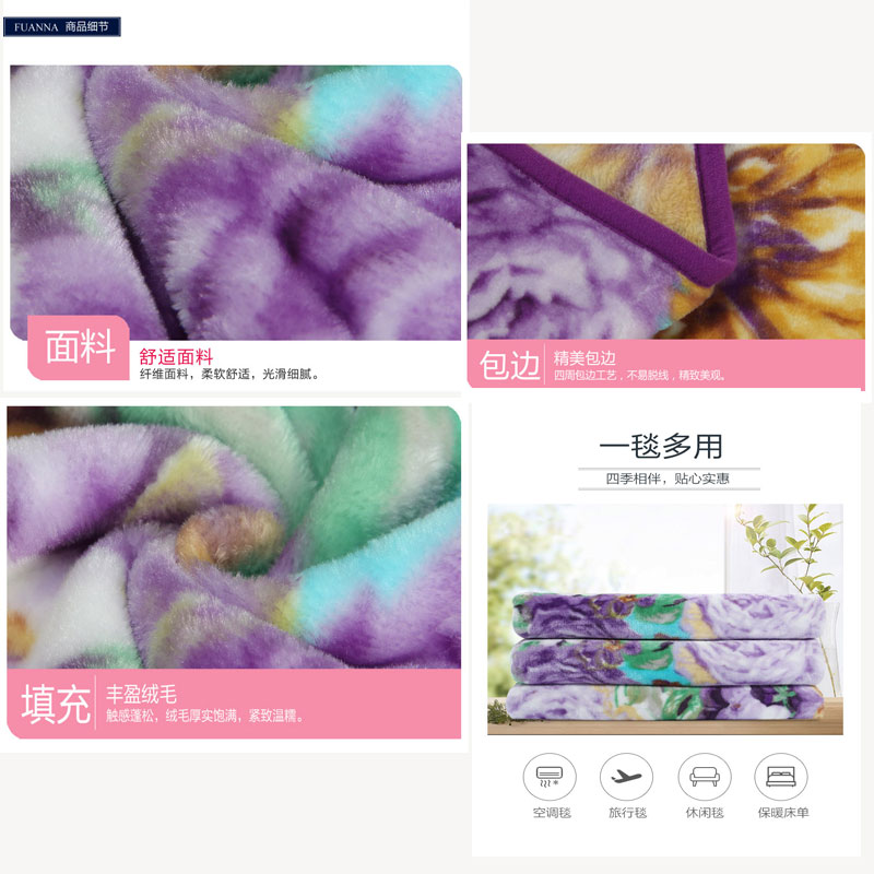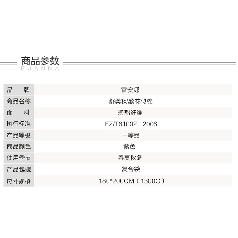 繁花似锦舒柔毯(适用1.5/1.8米床)(舒柔毯1件)【材质:聚酯纤维;克重1300克/紫】 |