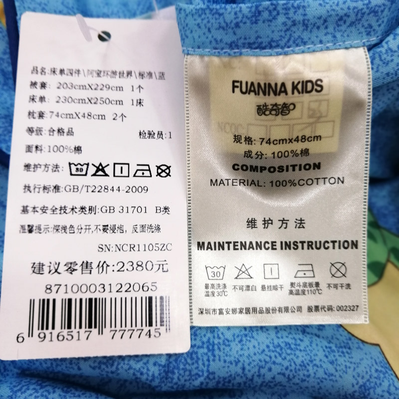 阿宝环游 世界床单四件套(适用1.5米床)(被套1件床单1件枕套2件)【棉/蓝】 |