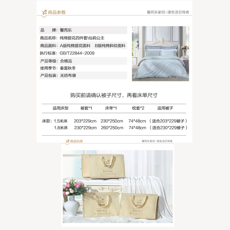 仙莉公主四件套(被套一件床单一件枕套两件)(适用1.8米床)【100%棉/蓝】 |