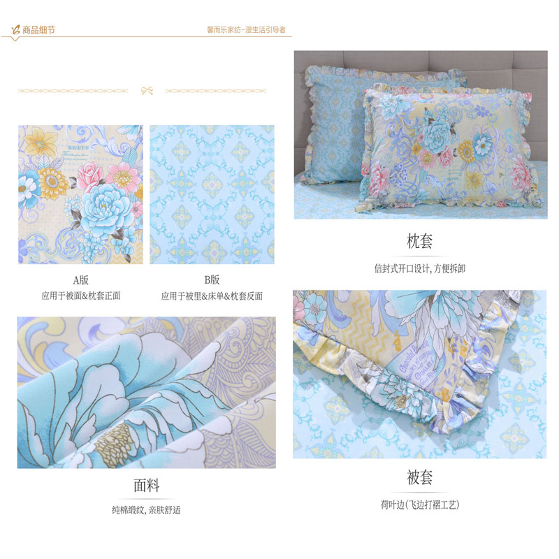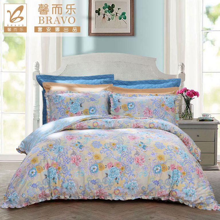 印花舒适四件套(被套一件床单一件枕套两件)(适用1.8-2.0米床)【纯棉缎纹/花色】 |