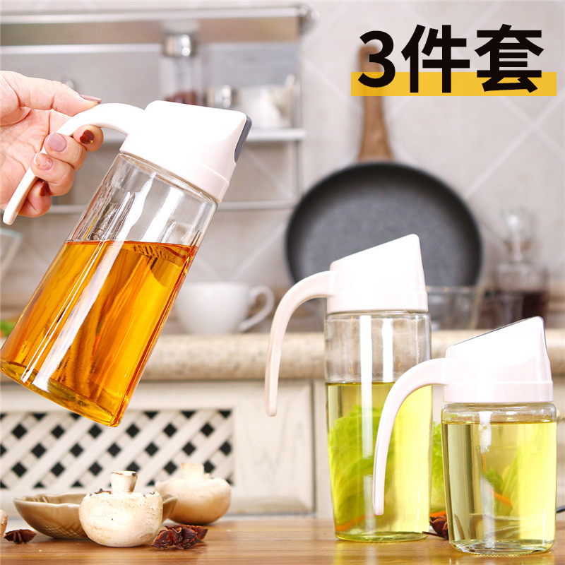 自动翻盖调味瓶3件套【瓶盖PP+ABS树脂/瓶身苏打玻璃/白色】 |