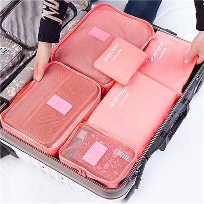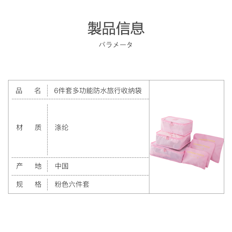 【6件套】旅行箱多功能防水旅行收纳袋【涤纶/粉色】 |