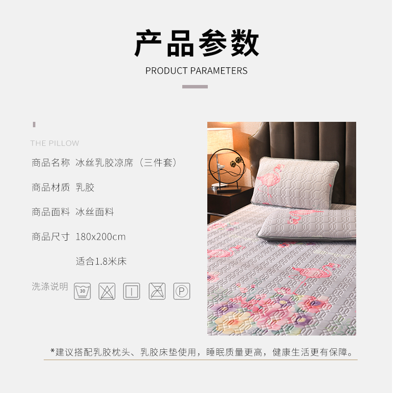 TAIHI泰嗨天然乳胶冰丝凉席三件套火烈鸟银灰(适合1.8米床)【天然乳胶/银灰色】 |