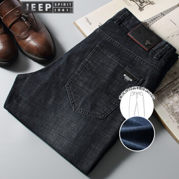 吉普 JEEP 牛仔裤男直筒2020夏季薄款弹力透气时尚中腰舒适休闲新款宽松男裤 39黑色 42 3尺2 |