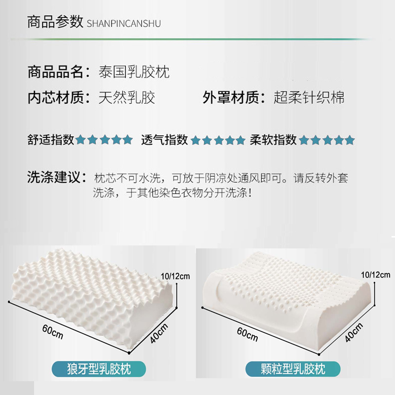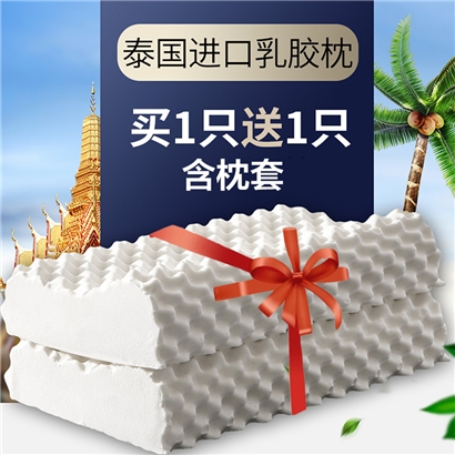 【买一送一含枕套】泰国天然乳胶枕(枕套两件)【天然乳胶/白色】 |