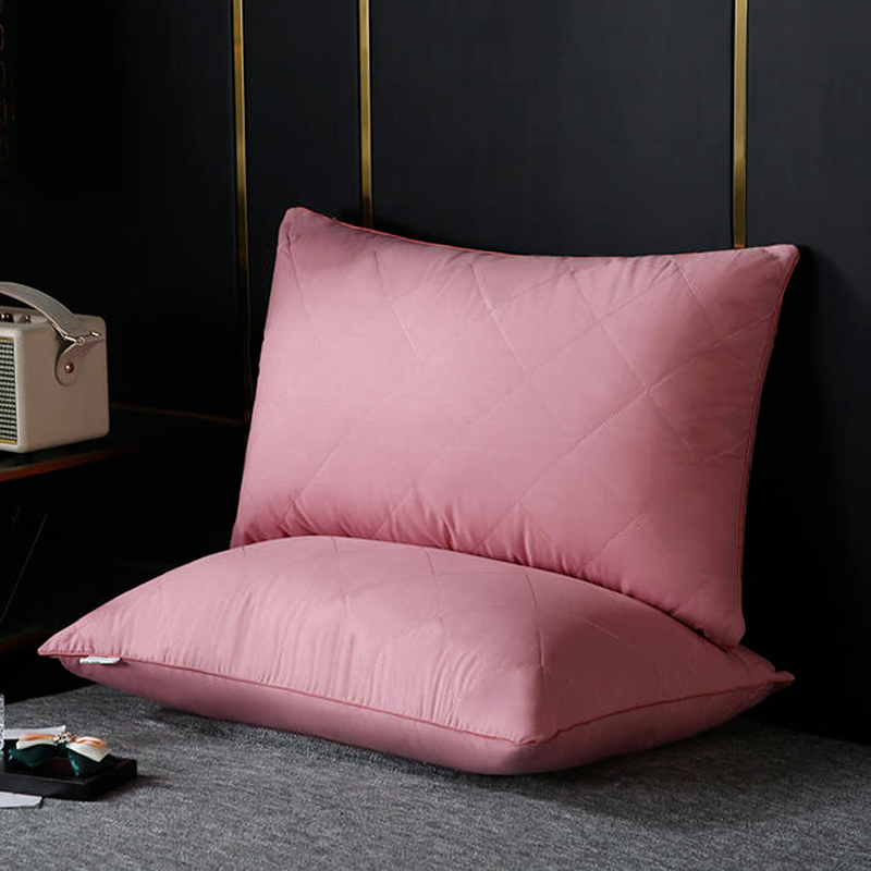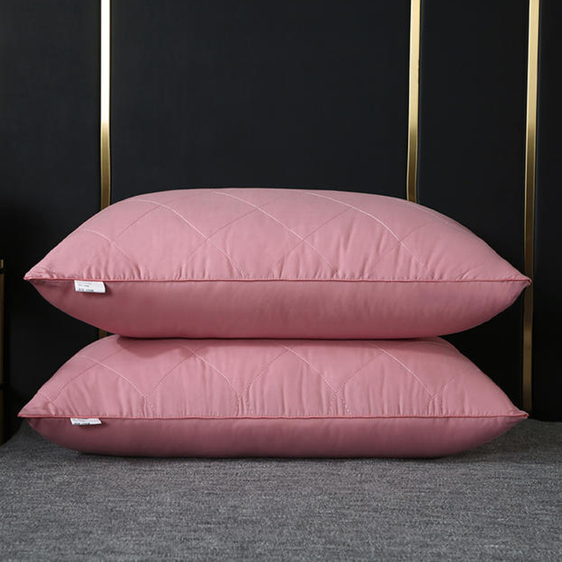 全棉大方格枕芯羽丝绒枕头【面料全棉填充羽丝绒/全棉枕豆沙粉】 |