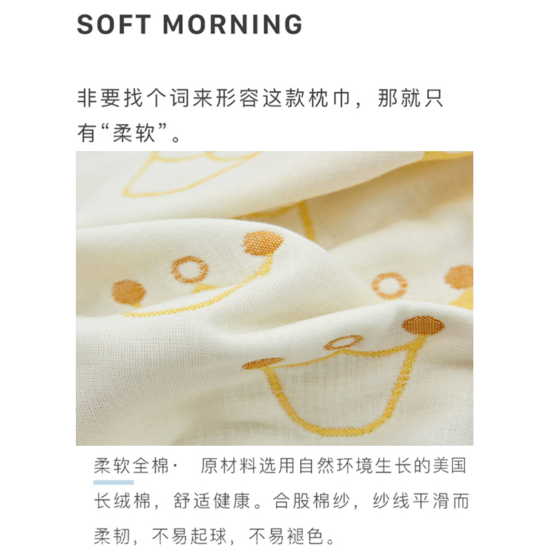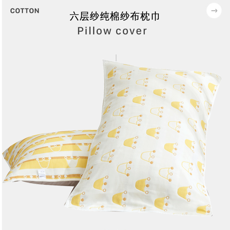 高品质A类全棉六层纱布枕巾一对【长绒棉/枕巾-皇冠金】 |