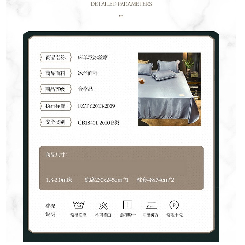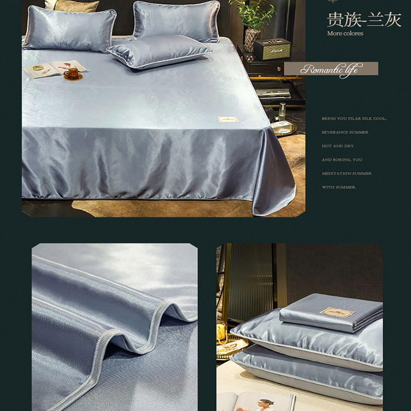 无印纯色床单款冰丝凉席三件套可机洗【冰丝面料(聚酯纤维)/贵族-兰灰】 |