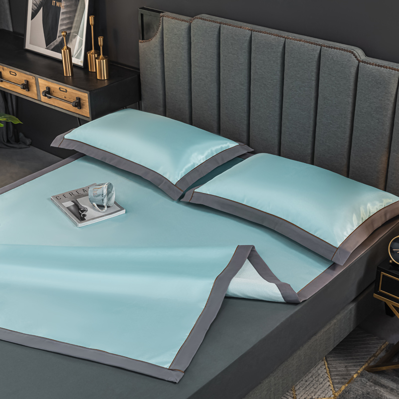 轻奢600D冰丝加厚三明治凉席三件套【聚酯纤维/三明治冰丝水绿】 |