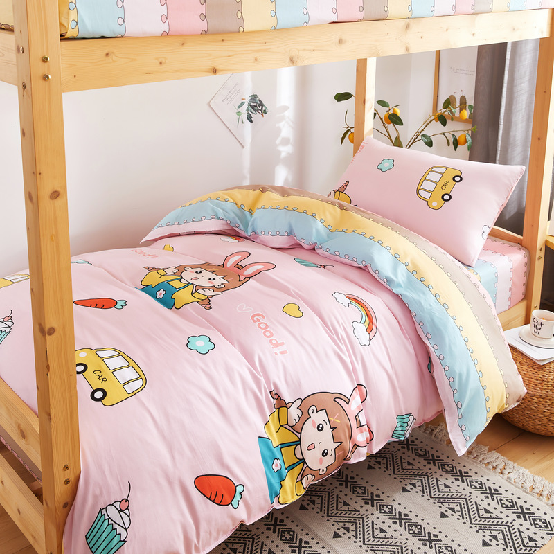 【AB版双面可用】学生宿舍高密全棉印花三件套【13070全棉/放飞青春粉】 |